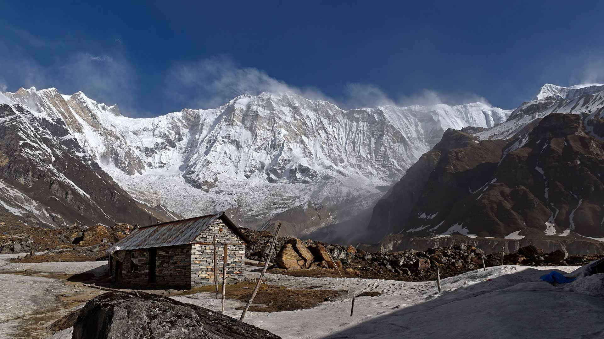 From our alpine camps we gain uninterrupted views of Machhapuchare. Its sacred, fluted peak looms high above us while the Annapurna range provides a distinctive and spectacular panorama. Trekking higher we enter a rugged world of huge cliffs and tumbling glaciers fed by the snowy flanks of Machhapuchare.